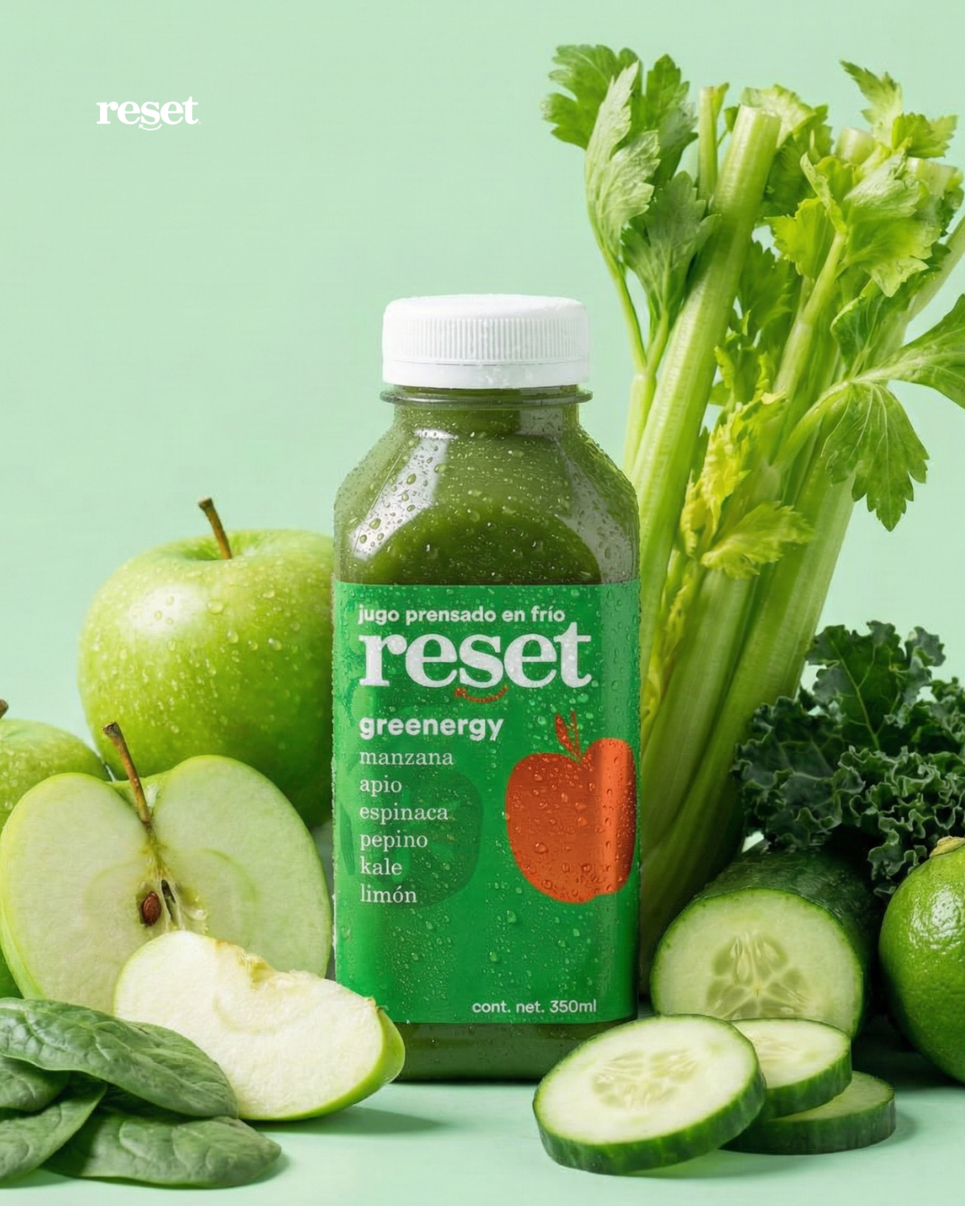 Sobre reset: todos nuestros jugos son naturalmente veganos y prensados en frío, hechos a base de frutas y verduras frescas. no contienen conservadores, azúcar añadida, ni aditivos. Este producto se entrega con al menos un mes de fecha de caducidad, a partir de la fecha de compra. una vez abierto dura 5 días en refrigeración.